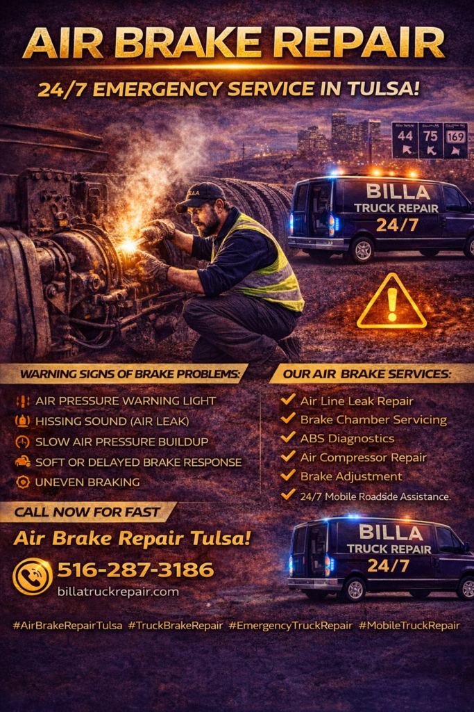 For professional Air Brake Repair Tulsa, our 24/7 mobile technicians provide fast diagnostics and on-site heavy-duty brake repair solutions.